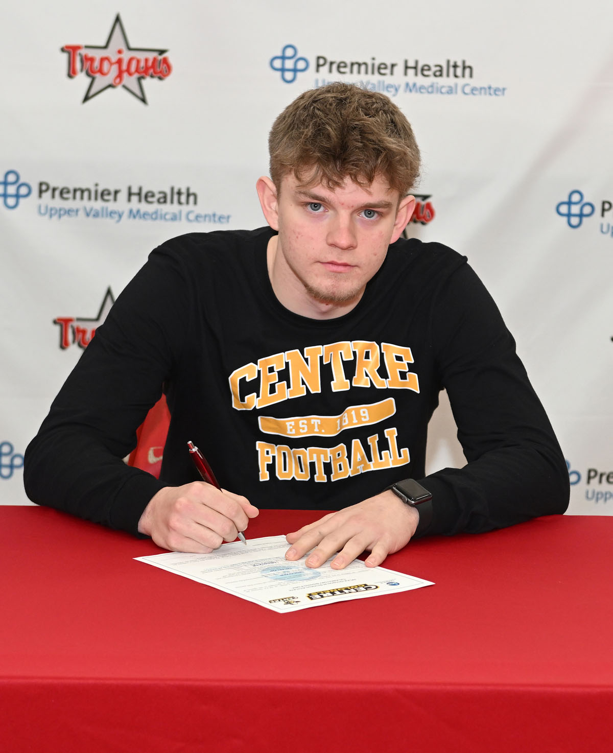 Senior, Josh Mayfield, a varsity letter winner in football and basketball, recently signed his letter of commitment to continue his academic and athletic careers at Centre College (KY) upon his graduation from Troy High School this spring. Josh will be play football for the Colonels next year.